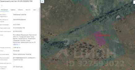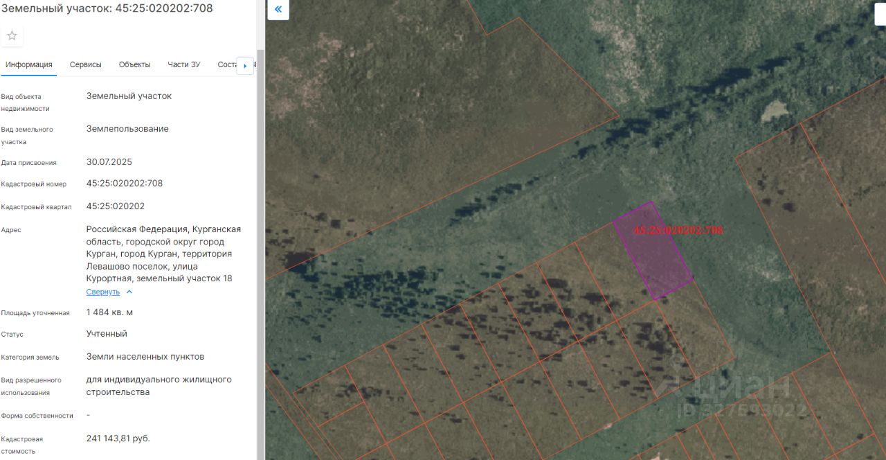 земельный участок с кадастровым номером 45:25:020202:708, площадью 1484 кв. м, с разрешенным использованием - для индивидуального жилищного строительства, расположенный по адресу: г. Курган, пос. Левашово, ул. Курортная, участок 18