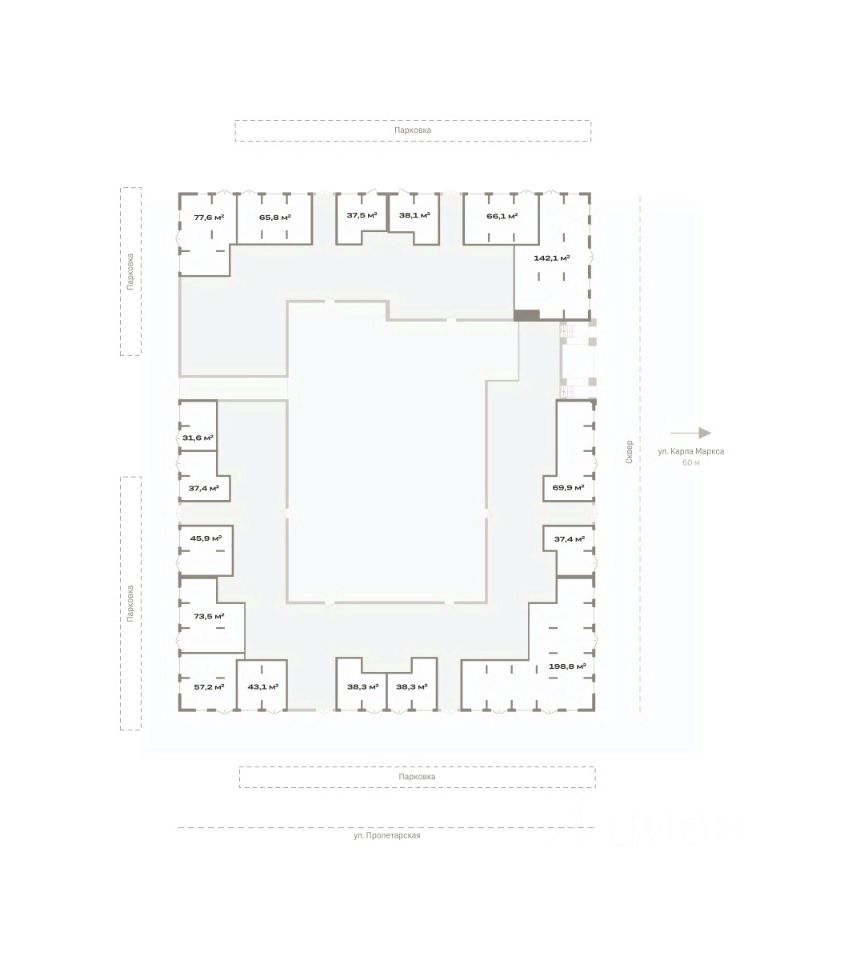 На первых этажах расположатся коммерческие помещения, которые можно приобрести для открытия бизнеса. Городской сквер укроет их от шума улиц и обеспечит трафик. В каждом помещении будет спроектирован отдельный вход, высокие потолки и панорамные окна. Так же будет сделана подготовка к ремонту.