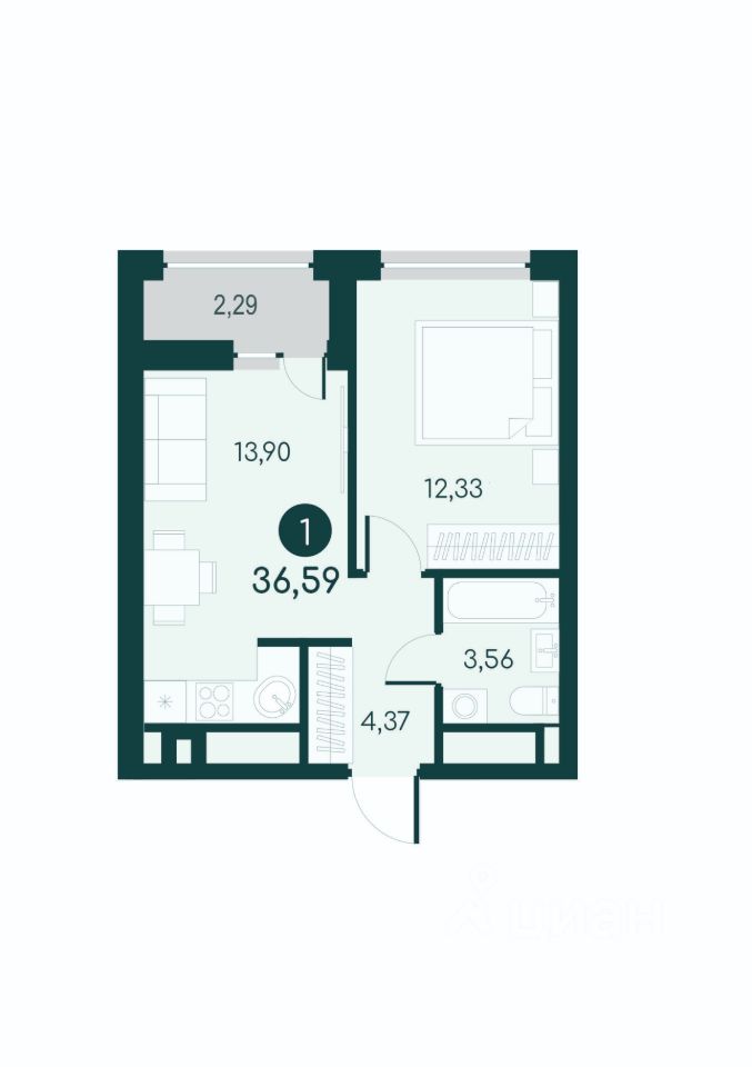 Однокомнатная квартира с предчистовой отделкой в ЖК "Малиновые высоты" на 6 этаже.