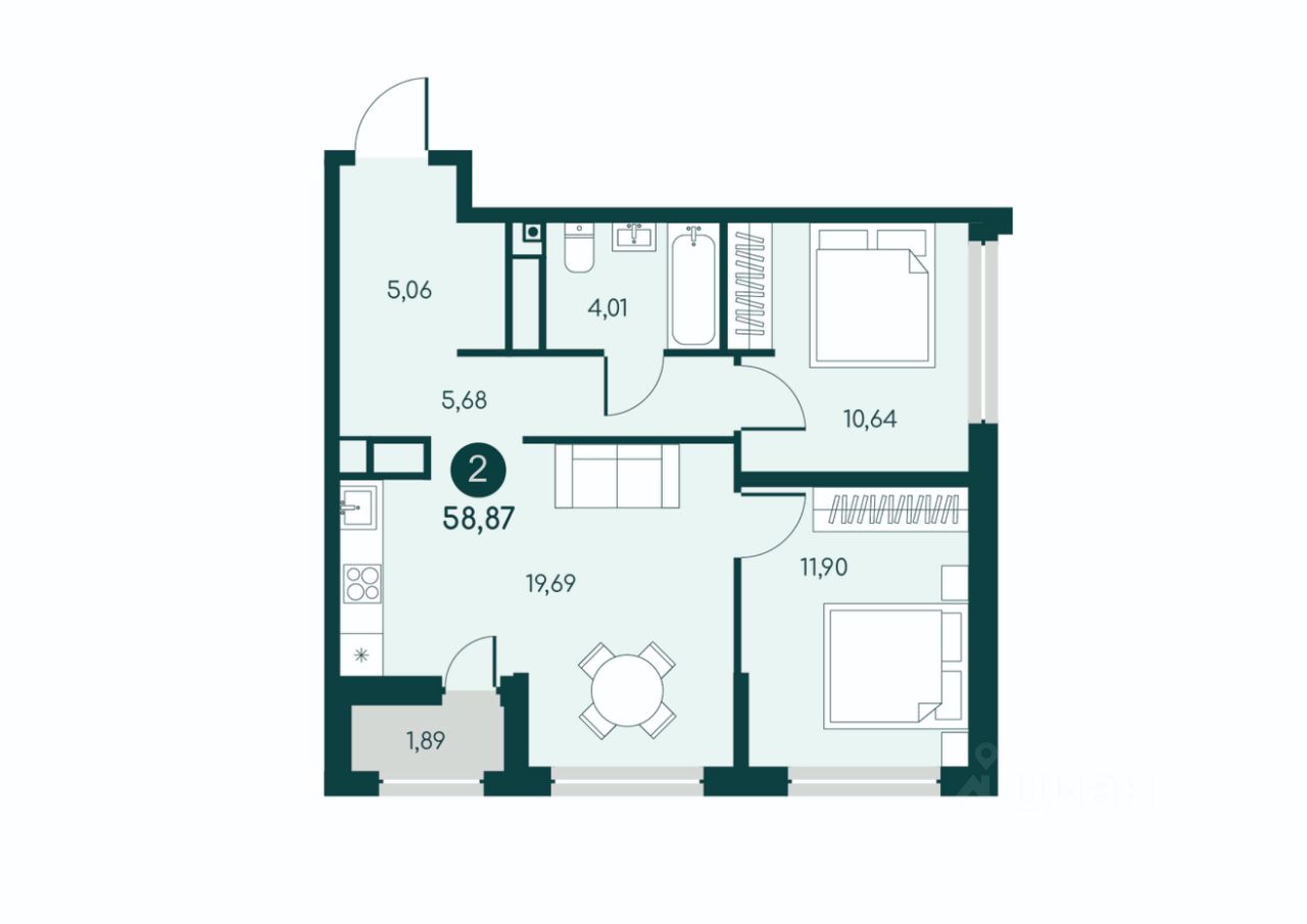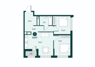 Двухкомнатная квартира с предчистовой отделкой в ЖК "Малиновые высоты" на 11 этаже.