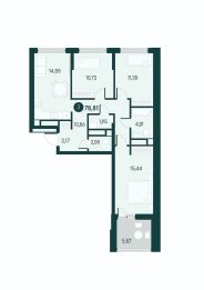 Трехкомнатная квартира с постирочной с предчистовой отделкой в ЖК "Малиновые высоты" на 4 этаже.