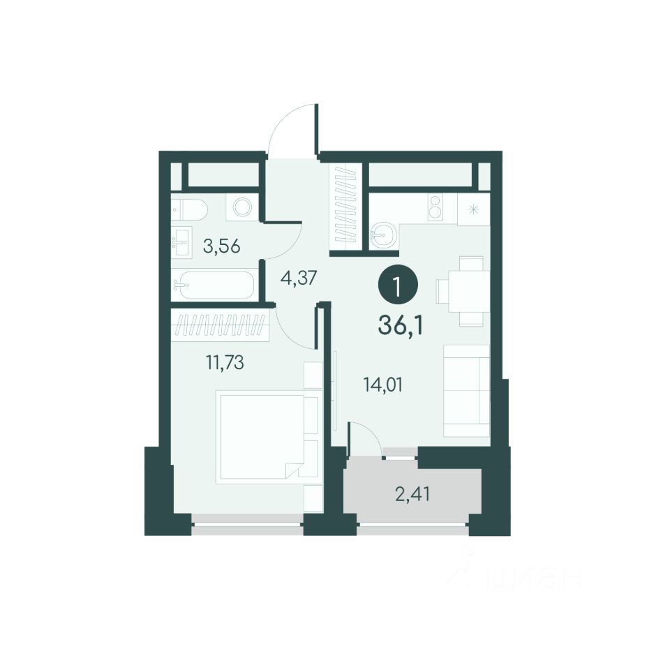 Однокомнатная квартира с предчистовой отделкой в ЖК "Малиновые высоты" на 12 этаже