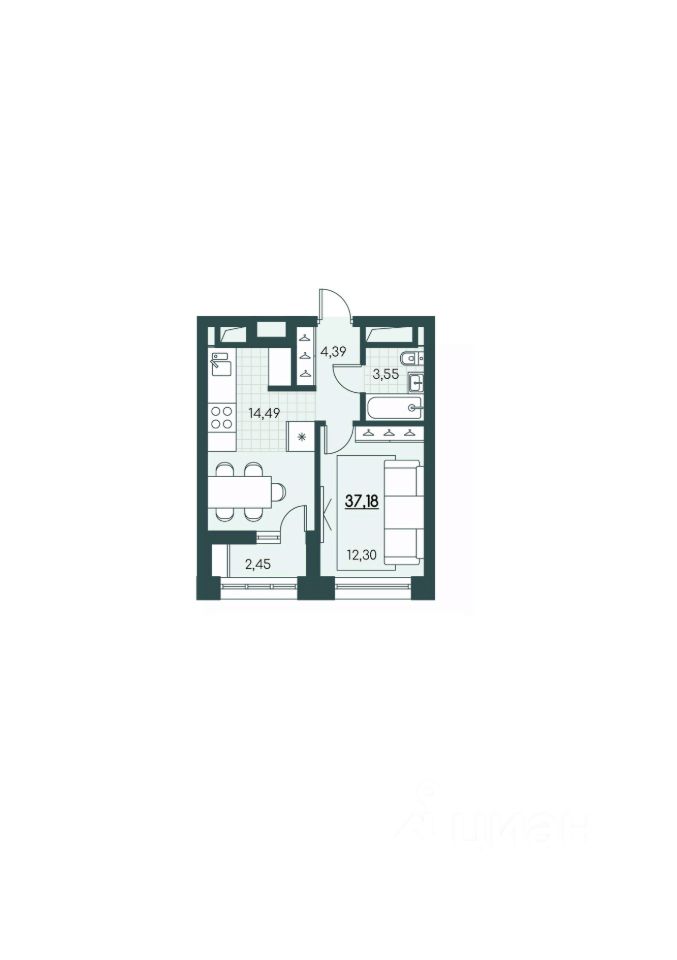 Общая площадь37,18 м²