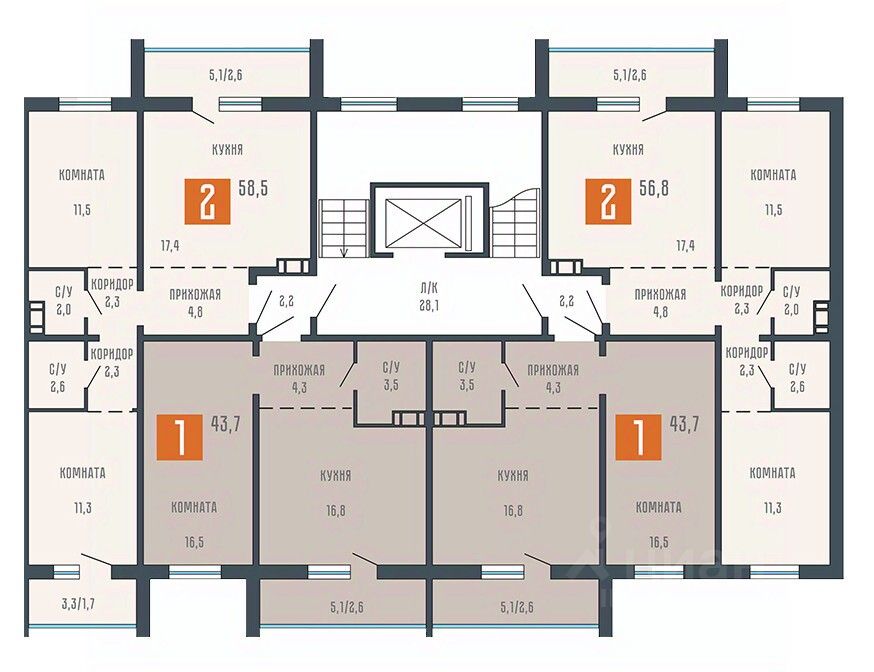 Общая площадь43,7 м²