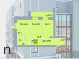 2-комн. квартира, 76,1 м²