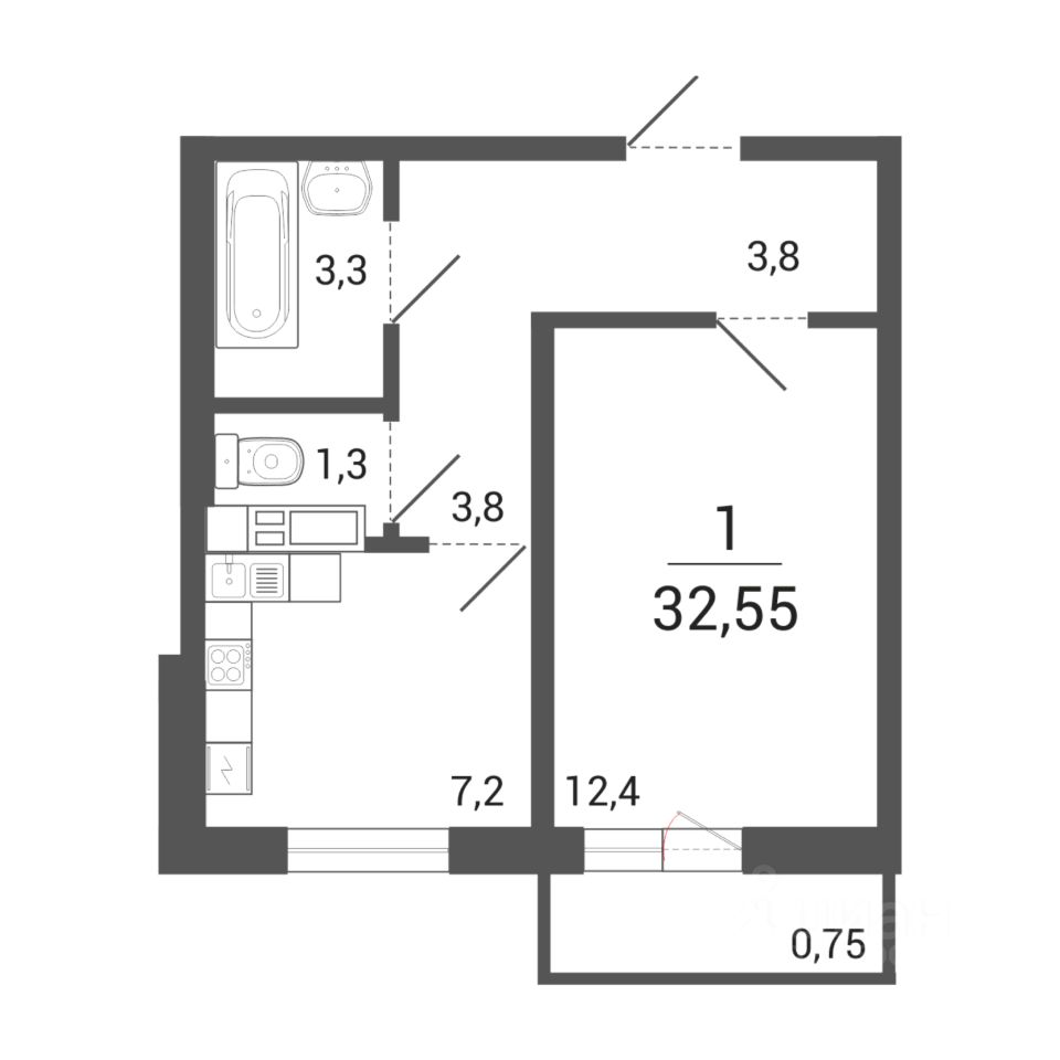 32,55 м²