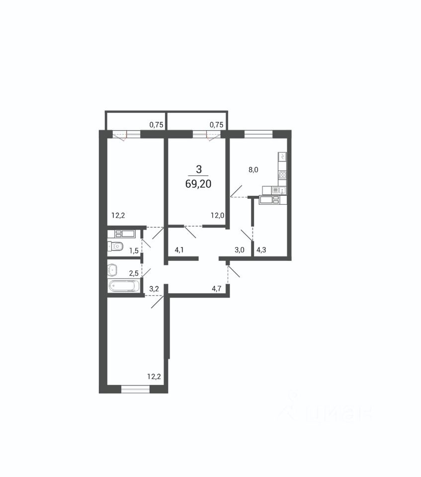 69,2 м²