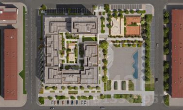 Прямой выход в городской сквер расширяет функционал двора. Жители смогут быстро попадать в общественную зону с фонтаном, детскими и спортивными площадками и местами для отдыха.