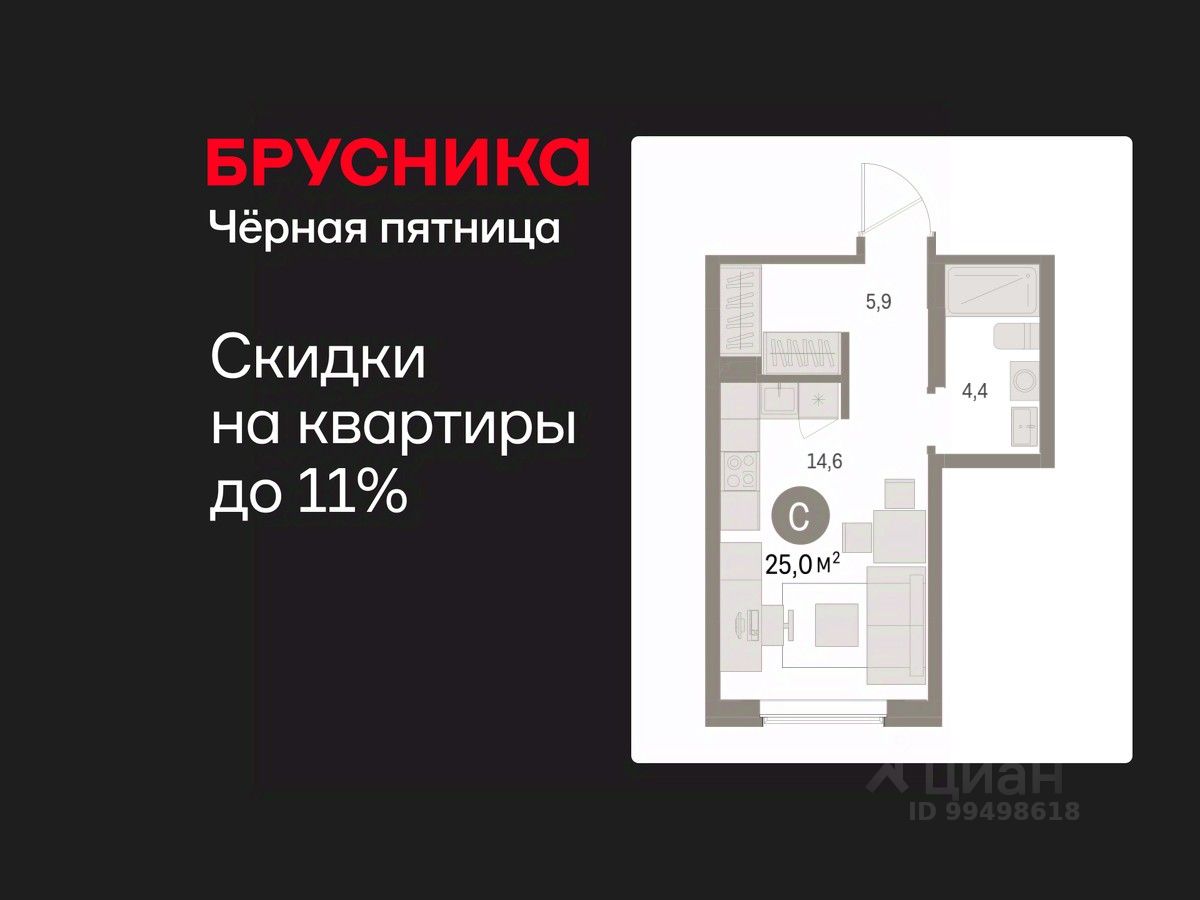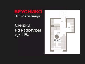 1-комн. студия от застройщика с предчистовой отделкой в ЖК "Дом Кино" на 2 этаже. Общая площадь: 25.01 кв.м., площадь гостиной 14.6 кв.м., из которых 5 кв.м. выделено под кухонную зону. Все окна выходят на одну сторону. В квартире один совмещенный санузел. Высота потолков 2.7 м.