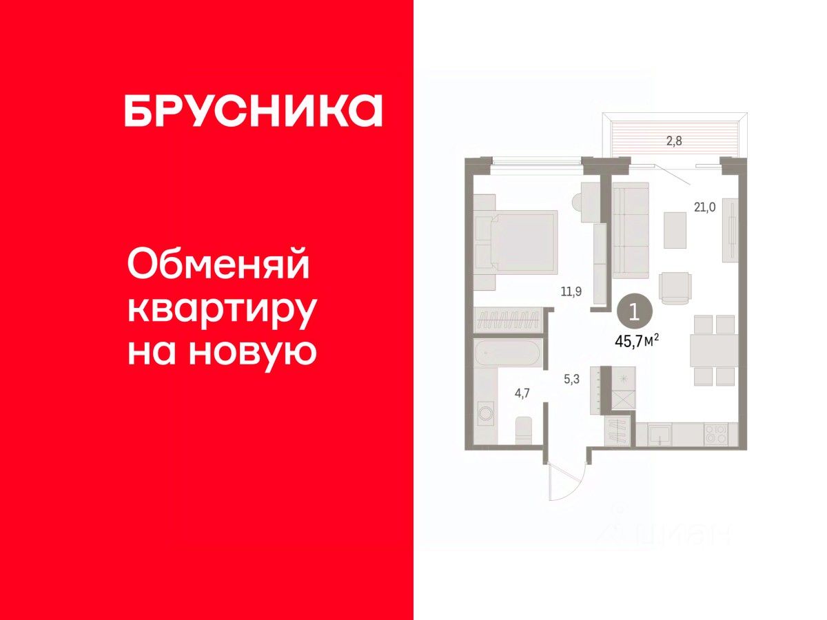 Продается 1-комн. квартира с предчистовой отделкой в ЖК "Дом Кино" на 2 этаже. Общая площадь: 45.66 кв.м., жилая: 11.9 кв.м., площадь просторной кухни-гостиной: 21 кв.м. Все окна выходят на одну сторону. В квартире один балкон, один совмещенный санузел. Высота потолков 2.7 м.