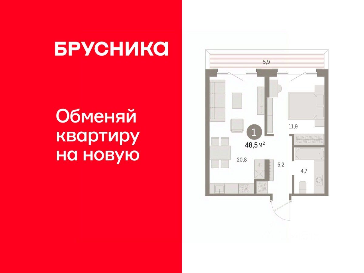 Продается однокомнатная квартира с предчистовой отделкой в ЖК "Дом Кино" на 2 этаже. Общая площадь: 48.52 кв.м., жилая: 11.9 кв.м., площадь просторной кухни-гостиной: 20.8 кв.м. Все окна выходят на одну сторону. В квартире один балкон, один совмещенный санузел. Высота потолков 2.7 м.