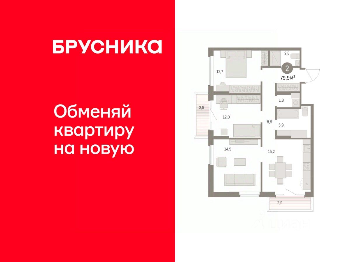 Двухкомнатная квартира от застройщика с предчистовой отделкой в ЖК "Дом Кино" на 4 этаже. Общая площадь: 79.92 кв.м., жилая: 24.7 кв.м., площадь просторной кухни-гостиной: 30.1 кв.м. Квартира угловая, очень светлая, естественная вентиляция при открытии окон. В квартире два балкона, два совмещенных санузла. Высота потолков 2.7 м.