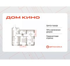 Квартира с кухней-гостиной и двумя спальнями в Доме кино. Особенности планировки: второй санузел, вид во двор, разнесённые спальни, предчистовая отделка, балкон.