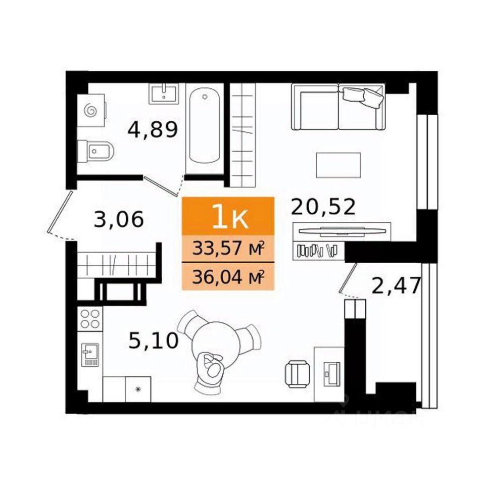 Общая площадь36,04 м²