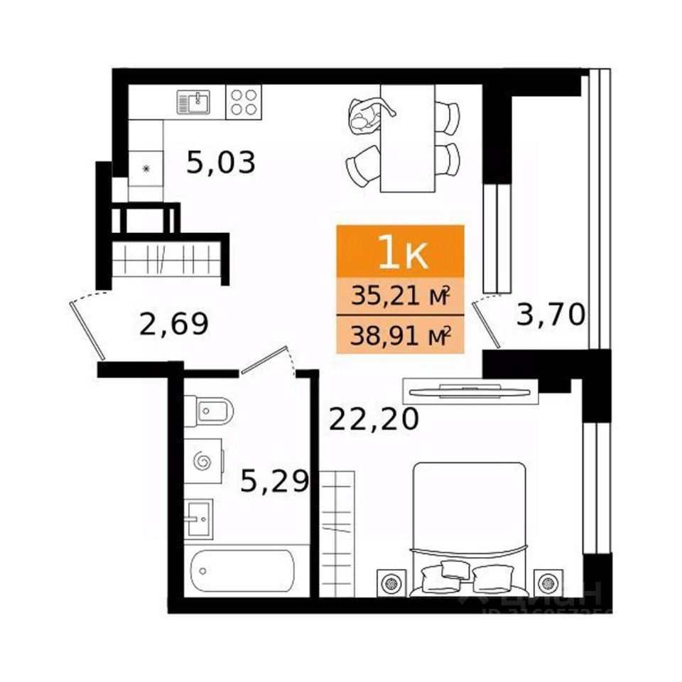Общая площадь38,91 м²