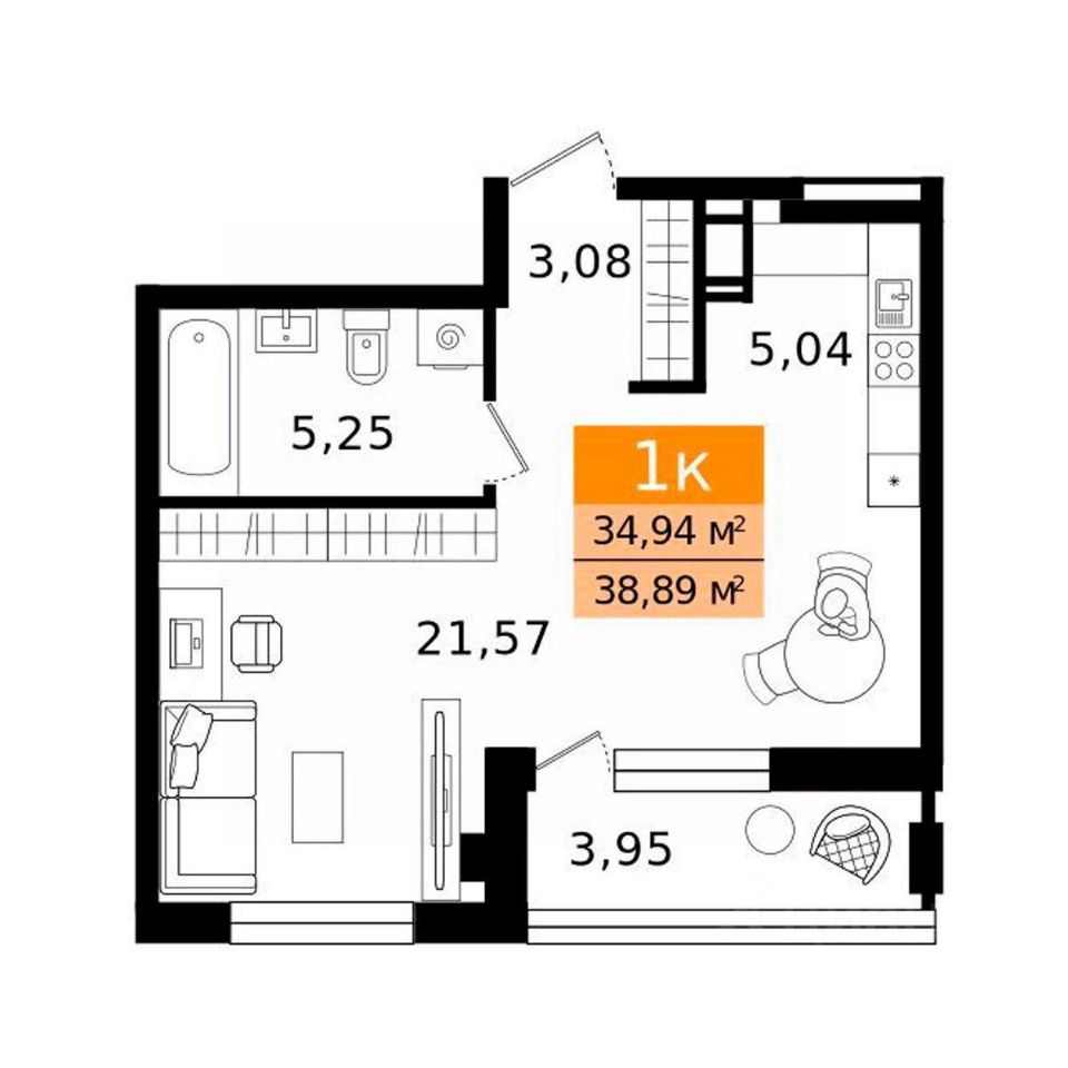 Общая площадь38,89 м²