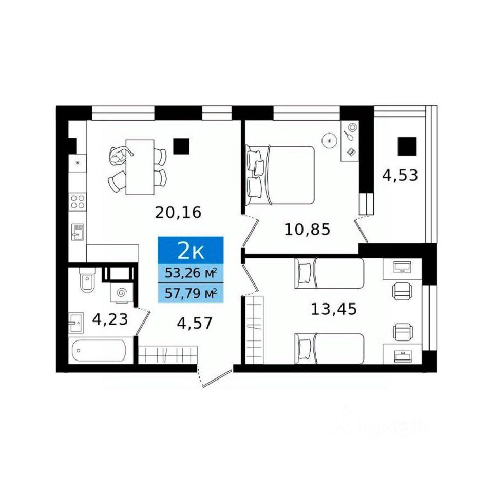 Общая площадь57,79 м²