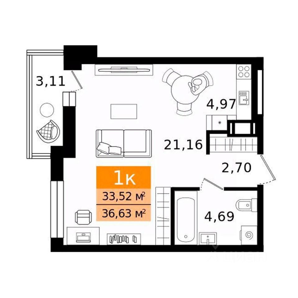 Общая площадь36,63 м²