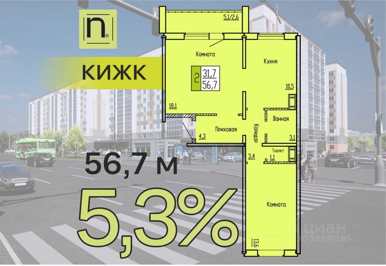 Продаётся 2-комнатная квартира в строящемся доме (Карбышева, 52к2), срок сдачи: II-кв. 2026, общей площадью 56.7 кв.м., на 10 этаже. Новый жилой комплекс "Чемпионы" от застройщика "ГК Кургансельстрой" расположен по адресу: г. Курган, улица Карбышева.