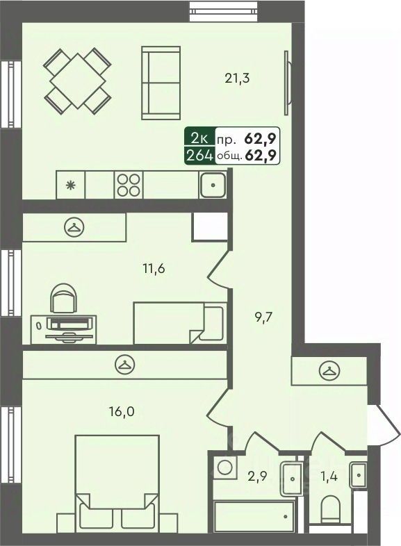 Продаётся 2-комнатная квартира в строящемся доме (ГП-6), срок сдачи: II-кв. 2026, общей площадью 62.9 кв.м., на 5 этаже. ЖК "Маяк" расположен г. Курган, в северо-западном направлении от центра города в районе озера Черное.