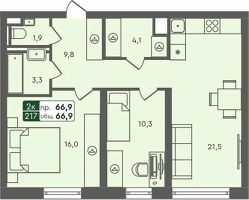 Продаётся 2-комнатная квартира в строящемся доме (ГП-7), срок сдачи: IV-кв. 2025, общей площадью 66.9 кв.м., на 3 этаже. ЖК "Маяк" расположен г. Курган, в северо-западном направлении от центра города в районе озера Черное.