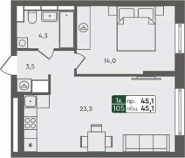 Продаётся 1-комнатная квартира в строящемся доме (ГП-7), срок сдачи: IV-кв. 2025, общей площадью 45.1 кв.м., на 2 этаже. ЖК "Маяк" расположен г. Курган, в северо-западном направлении от центра города в районе озера Черное.