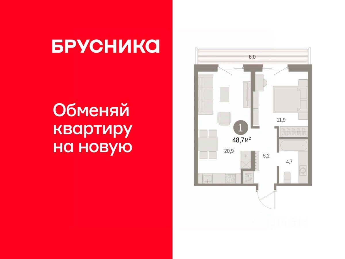 Продается однокомнатная квартира с предчистовой отделкой в ЖК "Дом Кино" на 4 этаже. Общая площадь: 48.69 кв.м., жилая: 11.9 кв.м., площадь просторной кухни-гостиной: 20.9 кв.м. Все окна выходят на одну сторону. В квартире один балкон, один совмещенный санузел. Высота потолков 2.7 м.
