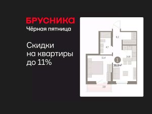 1-комн. квартира с предчистовой отделкой в ЖК "Дом Кино" на 6 этаже. Общая площадь: 39.75 кв.м., жилая: 11.4 кв.м., площадь просторной кухни-гостиной: 14.6 кв.м. Все окна выходят на одну сторону. В квартире один балкон, один совмещенный санузел. Высота потолков 2.7 м.
