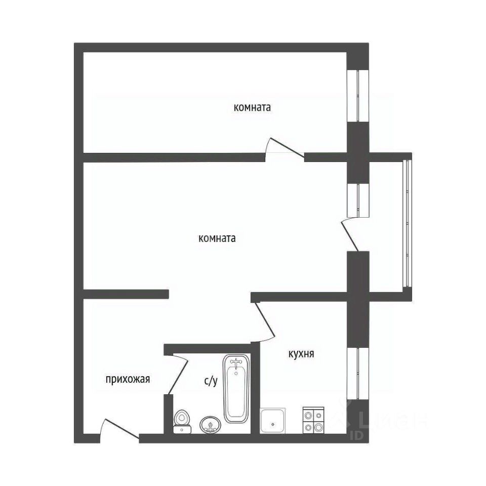 В спальне остается встроенный шкаф-купе, межкомнатные двери новые во всей квартире.