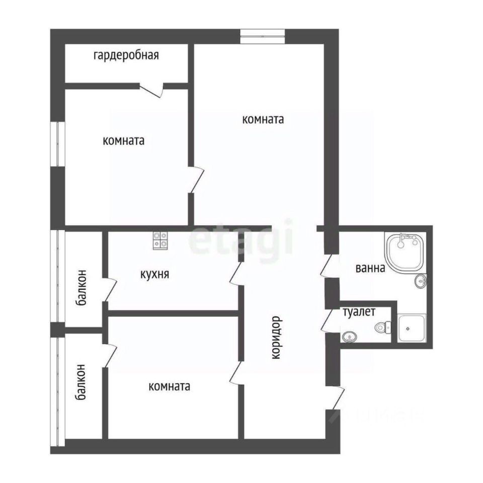 В квартире отдельная кухня, две изолированные комнаты и проходная гостиная. Санузел раздельный, в ванной установлен электрический теплый пол.