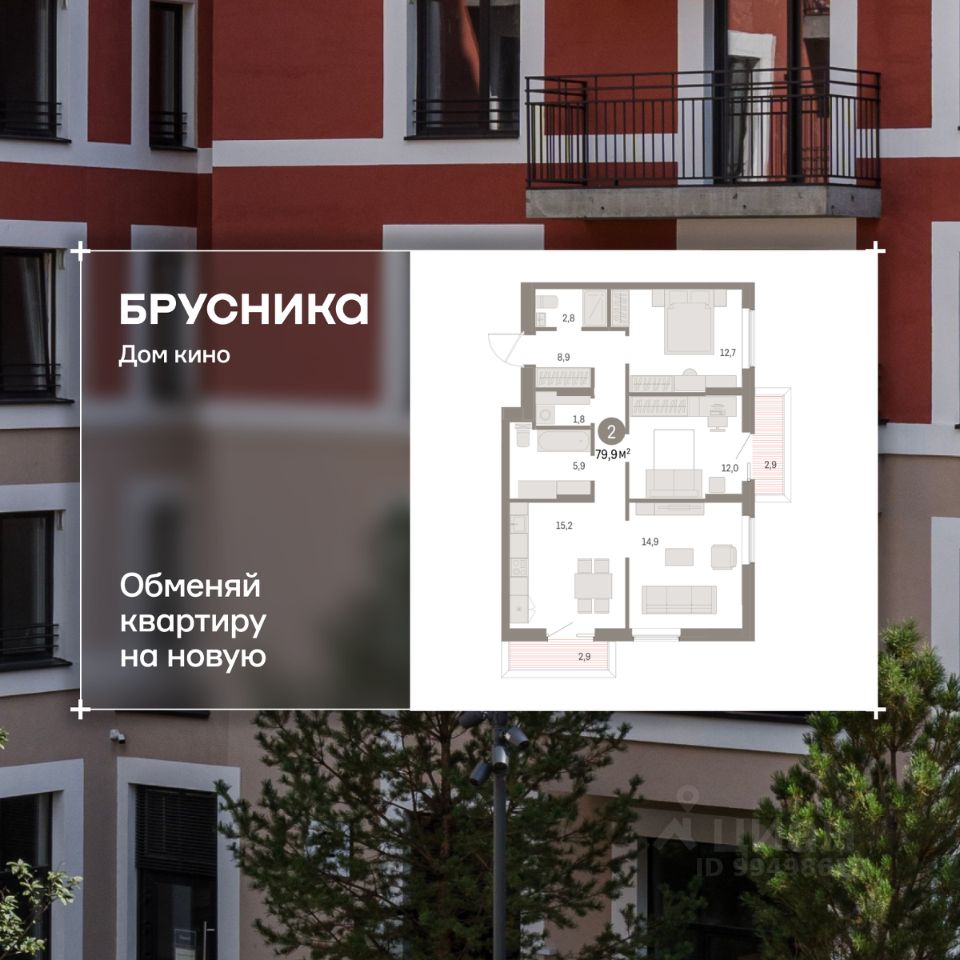 Двухкомнатная квартира с предчистовой отделкой в ЖК "Дом Кино" на 6 этаже. Общая площадь: 79.92 кв.м., жилая: 24.7 кв.м., площадь просторной кухни-гостиной: 30.1 кв.м. Квартира угловая, идеально подойдет любителям тишины и панорамных видов. В квартире два балкона, два совмещенных санузла. Высота потолков 2.7 м.