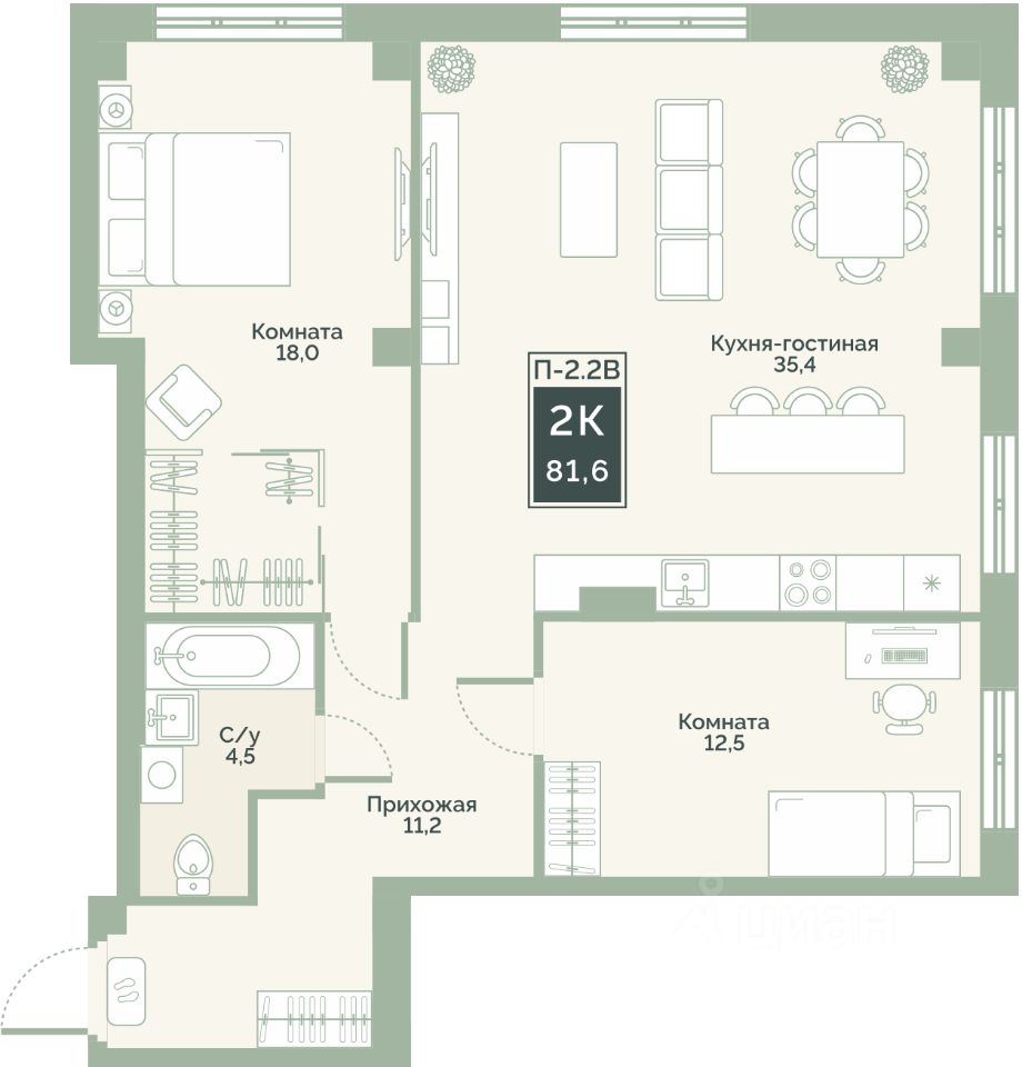 35,4 м²