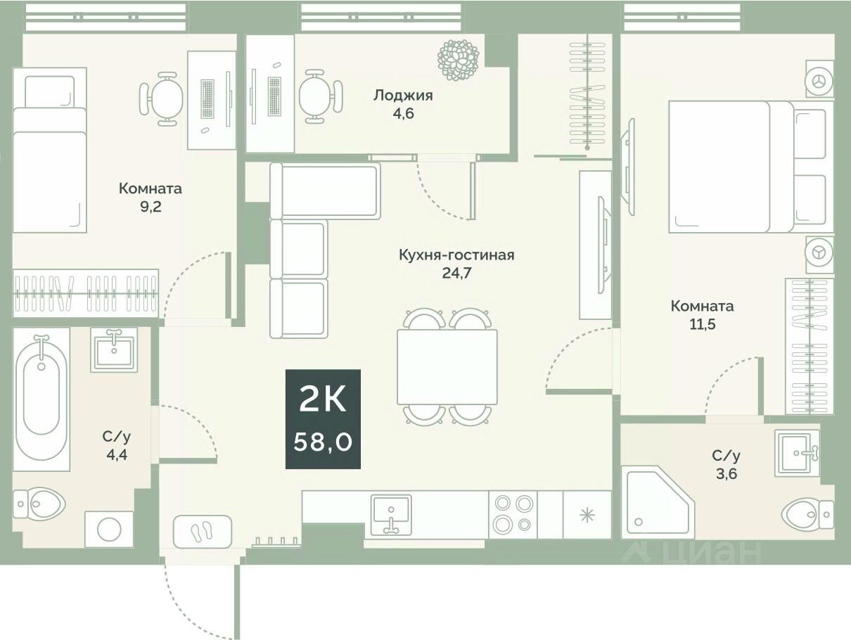 58 м²