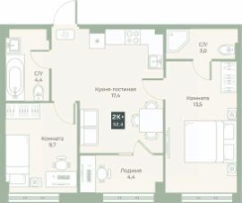 17,4 м²