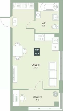 Квартира с предчистовой отделкой, с продуманной функциональной планировкой: кухня-гостиная м2, жилая площадь 24.7м2, высота потолка 2,76 м.