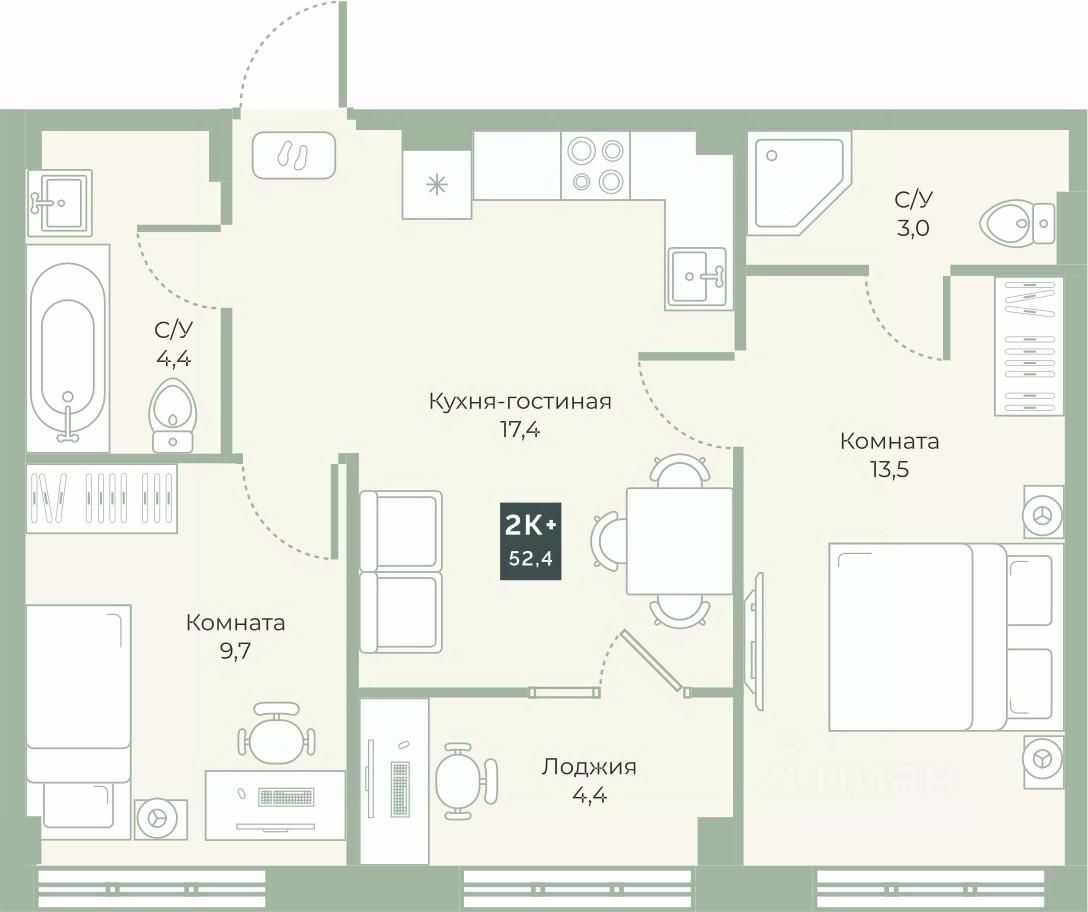 52,4 м²