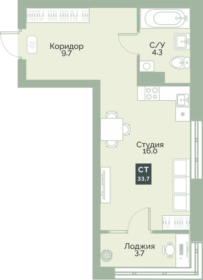 33,7 м²