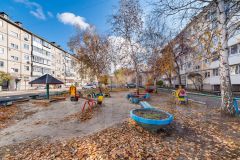 Дом содержится в хорошем состоянии. Благоустроенная придомовая территория с детской площадкой и удобной парковкой для автомобилей.