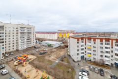 Большая застекленная лоджия выходит на сторону двора, утеплена.