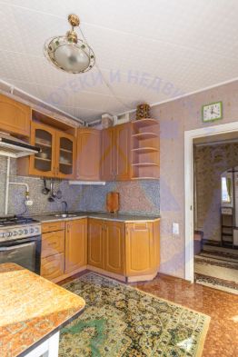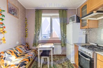 Кухня площадью 9 кв.м. - светлая и удобная, стены выровнены, потолок обычный. Напольное покрытие - линолеум, окна - пластиковые.Остаётся кухонный гарнитур, плита, вытяжка, возможно холодильник - всё готово к комфортному использованию.
