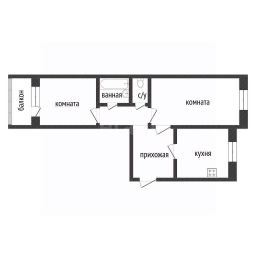 Продается двухкомнатная квартира общей площадью 48,9 кв.м с, кухня 7,4 кв.м.