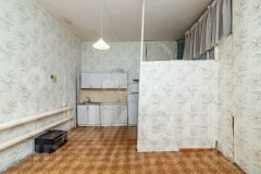 Высота потолков 3.2 метра визуально расширяет пространство и создает ощущение простора. Рациональная планировка позволяет эффективно использовать каждый метр: под потолком обустроена полноценная антресоль для организации спального места или системы хранения, что является практичным решением для одного человека или семьи с ребенком.