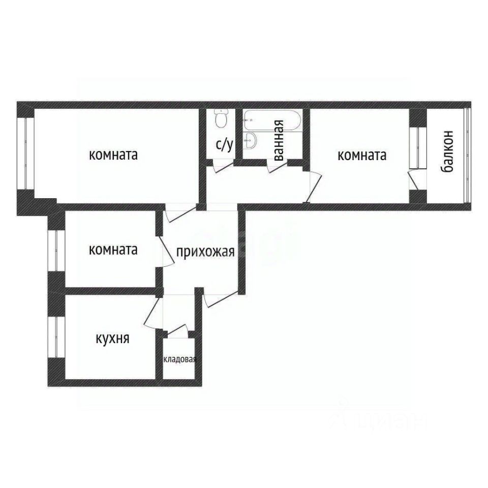 Планировка с изолированными комнатами, обеспечивает комфортное проживание для семьи. Окна выходят на обе стороны.Также в квартире есть небольшая кладовая. В зимний период - тепло.