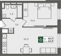 Продаётся 1-комнатная квартира в строящемся доме (ГП-7), срок сдачи: II-кв. 2026, общей площадью 45.9 кв.м., на 4 этаже. ЖК "Маяк" расположен г. Курган, в северо-западном направлении от центра города в районе озера Черное.