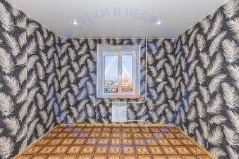 Межкомнатные двери - шпонированные. Окно - пластиковая (ПВХ). Потолок - натяжной. Напольное покрытие - линолеум. Стены - выровнены. Радиатор отопления - чугунный. Вся мебель и техника остаются.