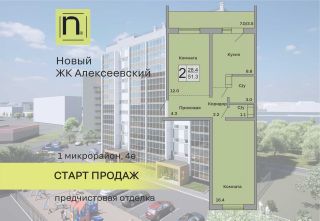 Продаётся 2-комнатная квартира в строящемся доме (Дом 1), срок сдачи: I-кв. 2027, общей площадью 51.3 кв.м., на 1 этаже. Новый жилой комплекс "Алексеевский" от застройщика "ГК Кургансельстрой" расположен по адресу: г. Курган, жилой район Заозёрный, 1-й микрорайон, улица Алексеева.