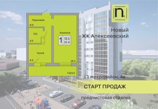 Продаётся 1-комнатная квартира в строящемся доме (Дом 1), срок сдачи: I-кв. 2027, общей площадью 35.8 кв.м., на 5 этаже. Новый жилой комплекс "Алексеевский" от застройщика "ГК Кургансельстрой" расположен по адресу: г. Курган, жилой район Заозёрный, 1-й микрорайон, улица Алексеева.