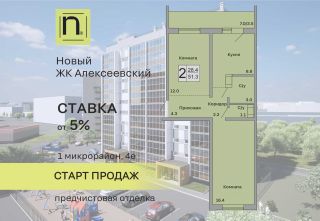 Продаётся 2-комнатная квартира в строящемся доме (Дом 1), срок сдачи: I-кв. 2027, общей площадью 51.3 кв.м., на 9 этаже. Новый жилой комплекс "Алексеевский" от застройщика "ГК Кургансельстрой" расположен по адресу: г. Курган, жилой район Заозёрный, 1-й микрорайон, улица Алексеева.