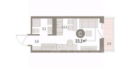 Продается 1-комн. студия с предчистовой отделкой в ЖК "Дом Кино" на 7 этаже. Общая площадь: 23.06 кв.м., площадь гостиной 13.5 кв.м., из которых 5 кв.м. выделено под кухонную зону. Все окна выходят на одну сторону. В квартире один балкон, один совмещенный санузел. Высота потолков 2.7 м.