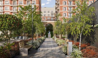 Прямой выход в городской сквер расширяет функционал двора. Жители смогут быстро попадать в общественную зону с фонтаном, детскими и спортивными площадками и местами для отдыха.